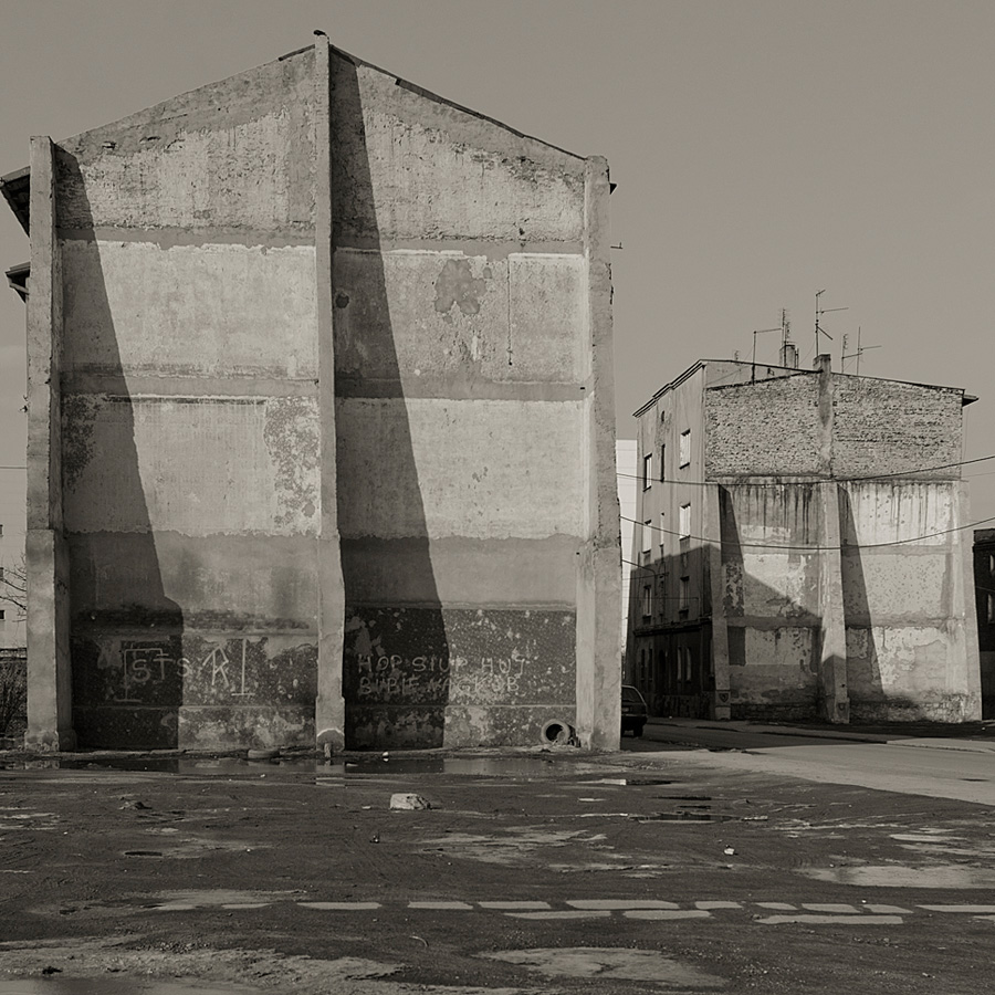 Obecny obok, wyparty świat, nawet jeśli nie wzbudza niepokoju, to pozostaje czymś wstydliwym, nie spełniającym kryteriów miejsca dobrego na niedzielny spacer, czy wartego pokazania odwiedzającym nas znajomych. Chciałbym aby to co znajduje się na zdjęciach, było nie tylko dokumentem ukazującym konkretne miejsca, ale biblioteką obrazów wywołujących u oglądającego splot skojarzeń, przenikań, osmoz z jego własnym duchowym miastem – labiryntem, utraconym wraz z dzieciństwem.