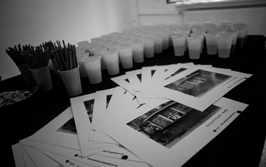 Zdjęcie przedstawia sześćdziesięciu czterech uczestników „warsztatów-fotograficznych.org”, których nie widać, gdyż zeszli do podziemi. Fot: Kasia Pogorzelska.